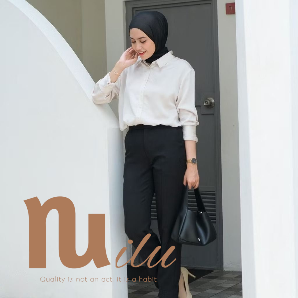 NILU - Celana Kerja Kantor Wanita Formal Celana Bahan Pinggang Resleting Kancing