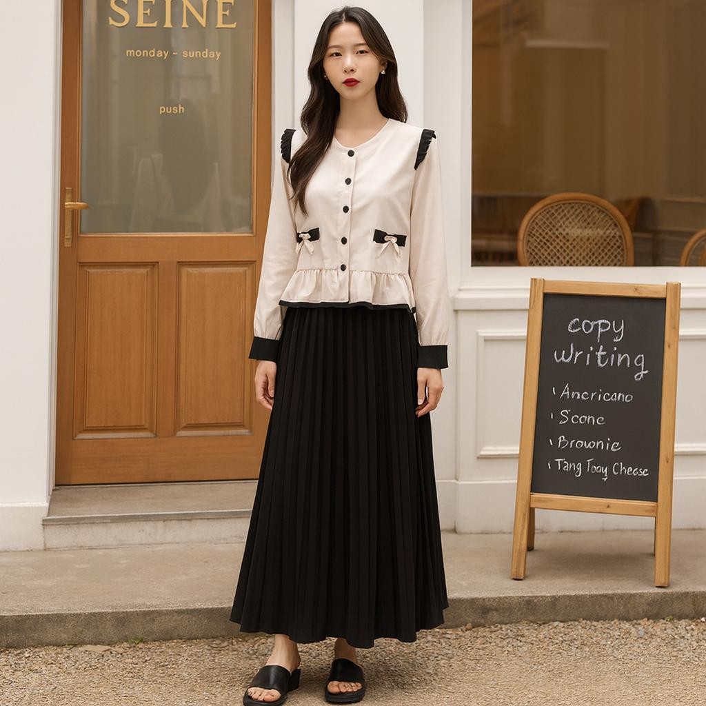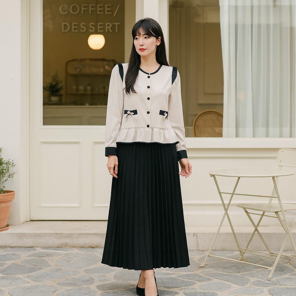 NJW - Dress LURANG Wanita cardigan pita ruffle dan dress plikset - DRESS WANITA