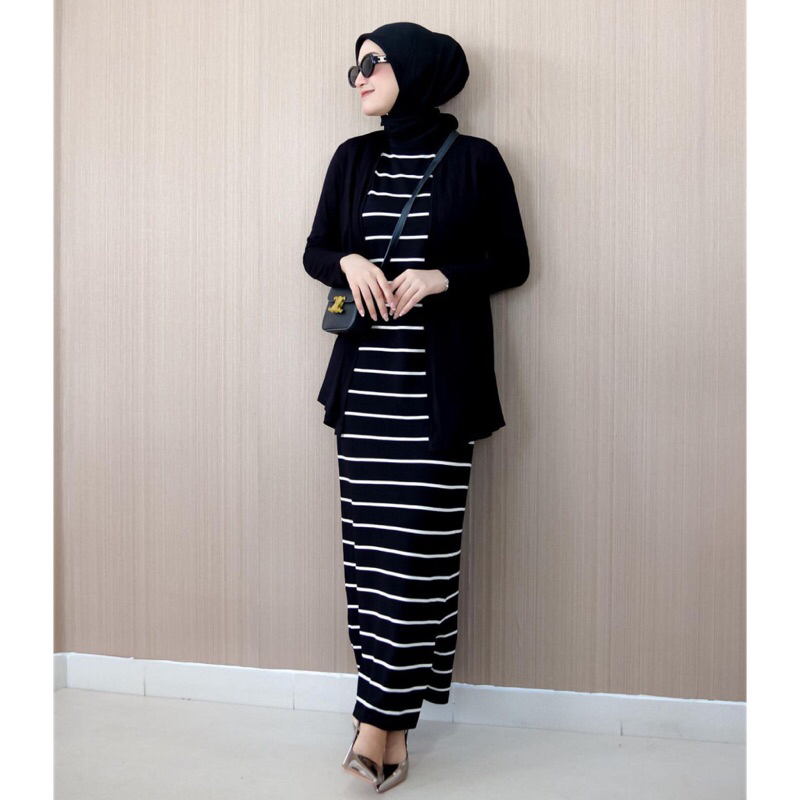 Long Dress Rajut Premium Basic Inner Span Strip Tanpa Lengan - 3 ukuran