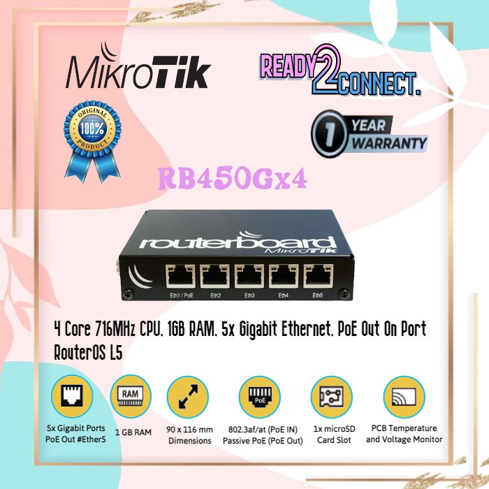 Mikrotik RB450Gx4 Router Indoor 4 Core 1GB RAM
