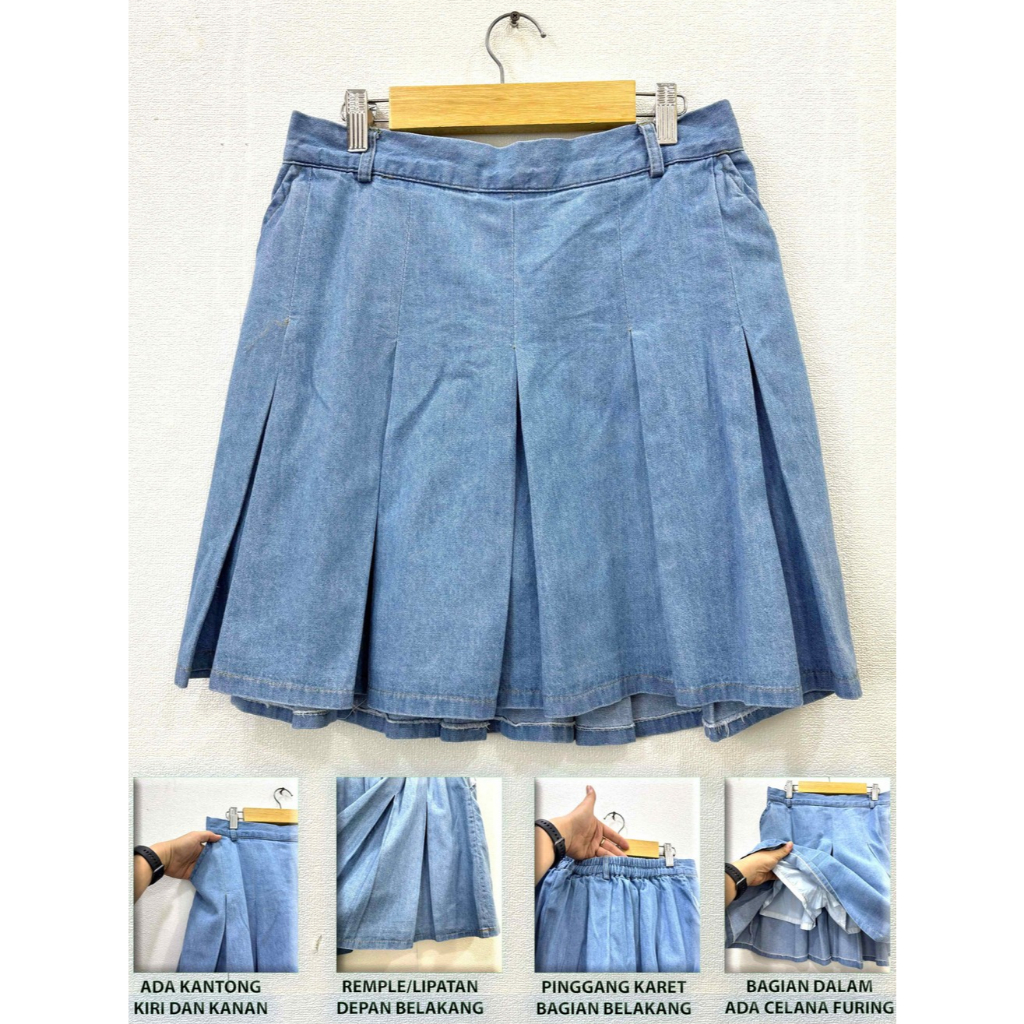 RCP.DB - Rok celana remple depan belakang bahan jeans pinggang karet nyaman di pakai bagian dalam ada celana furing - skorts -skort jeans - rokcel