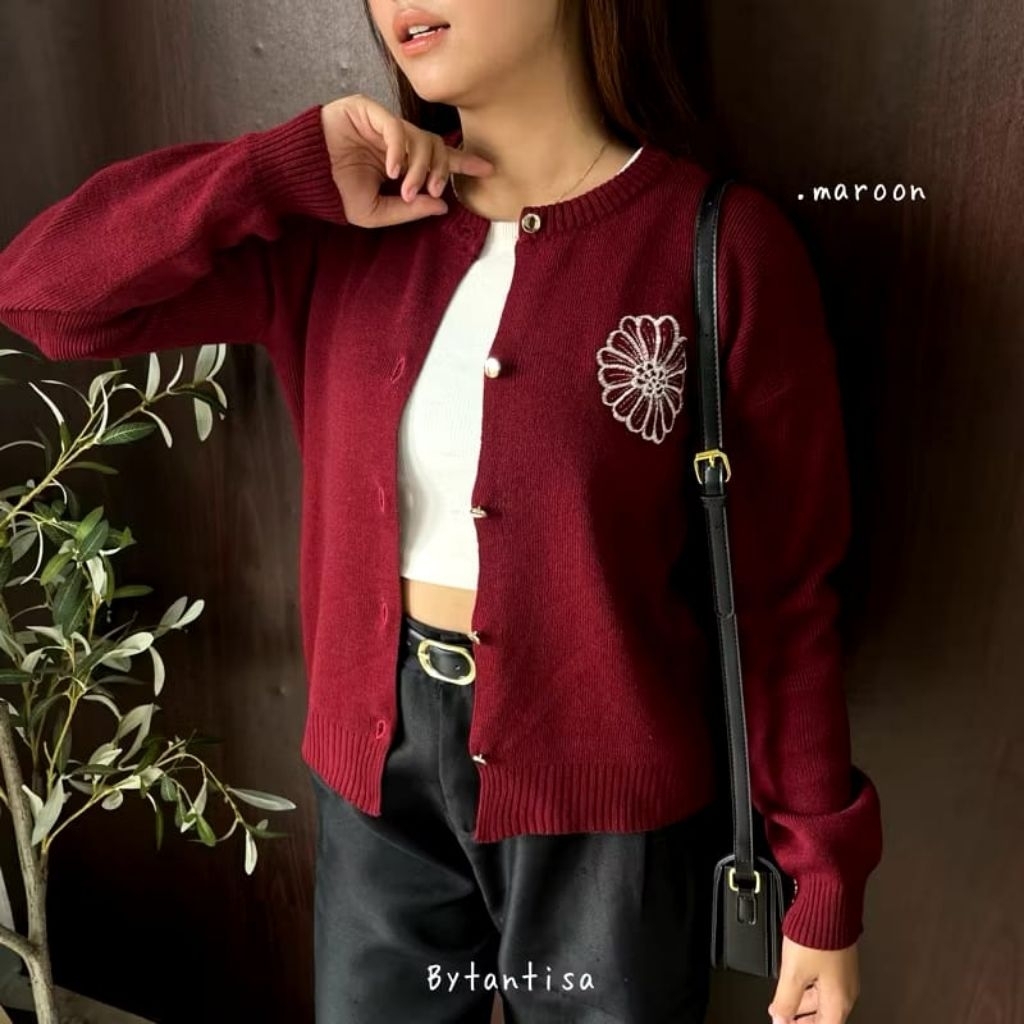 Alia Cardigan Wanita Bordil Flower Atasan Lembut Kekinian
