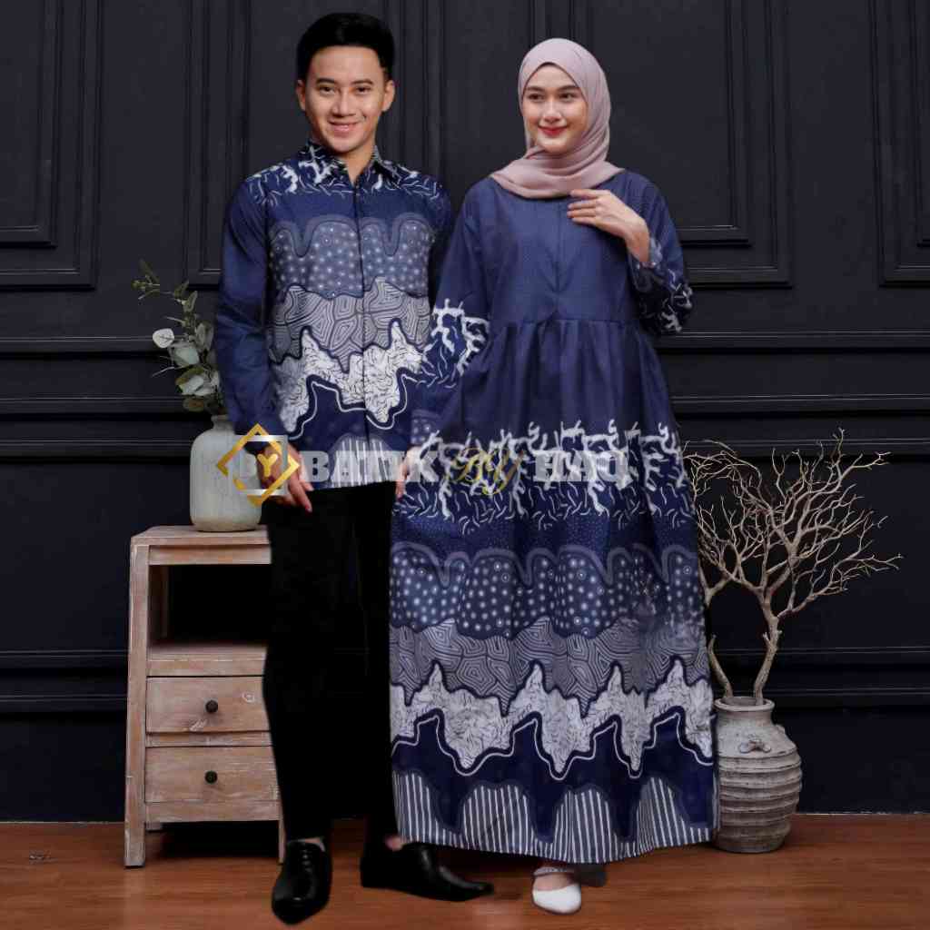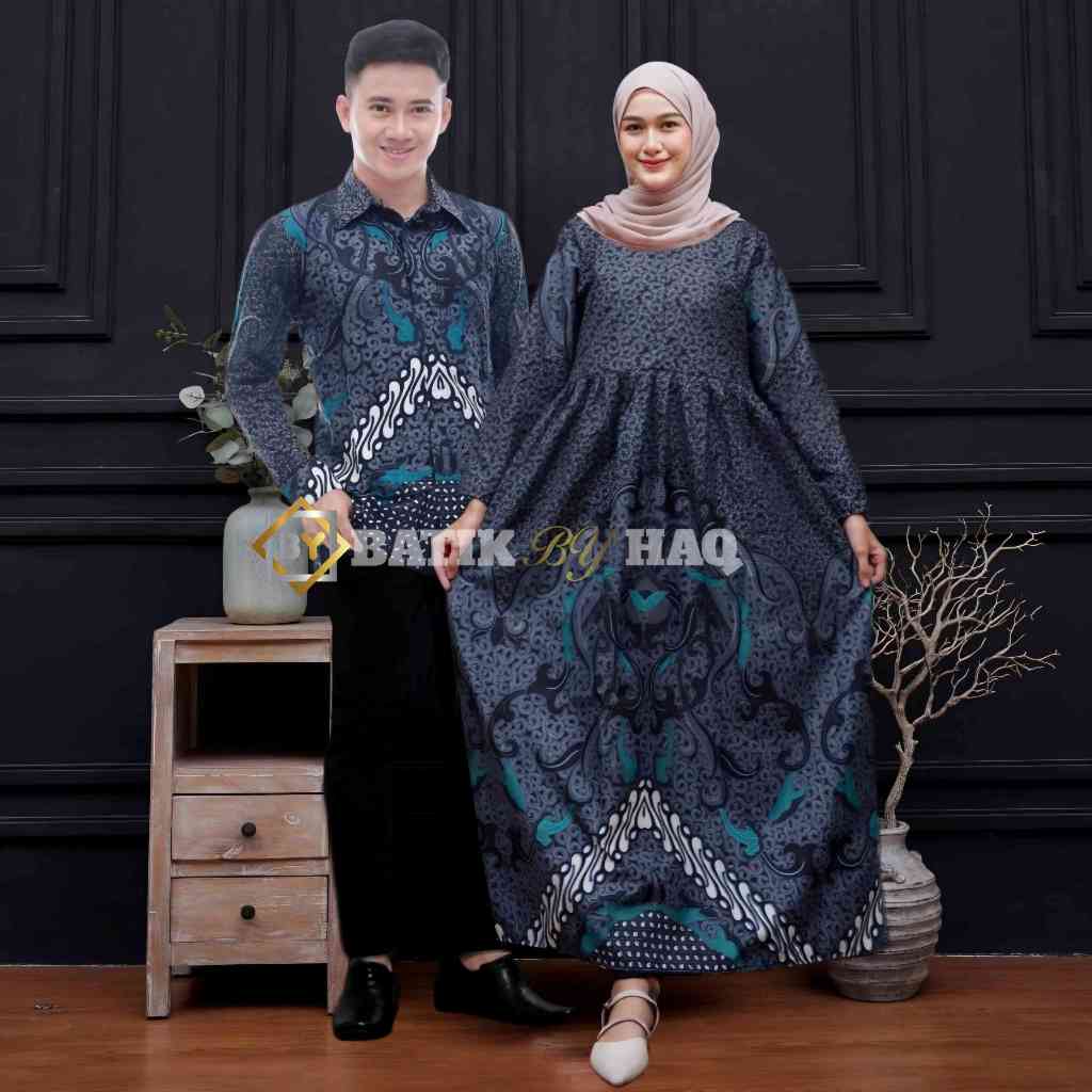 Baju Batik Couple Pasangan Gamis Dan Kemeja Lengan Panjang Sarimbit Motif Terlaris