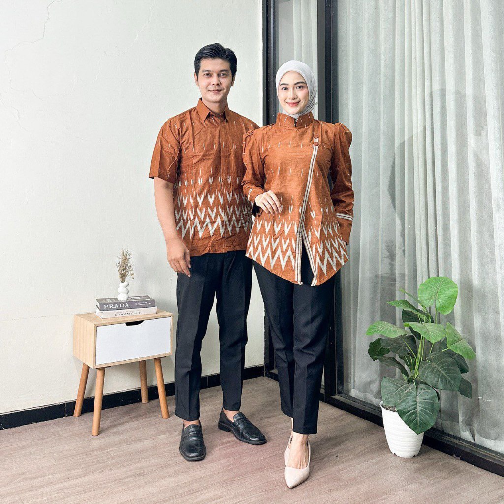 Baju Batik Couple Pasangan Kekinian Motif Puff Azura Baju Batik Wanita Modern Kantor Elegan Batik Jumbo
