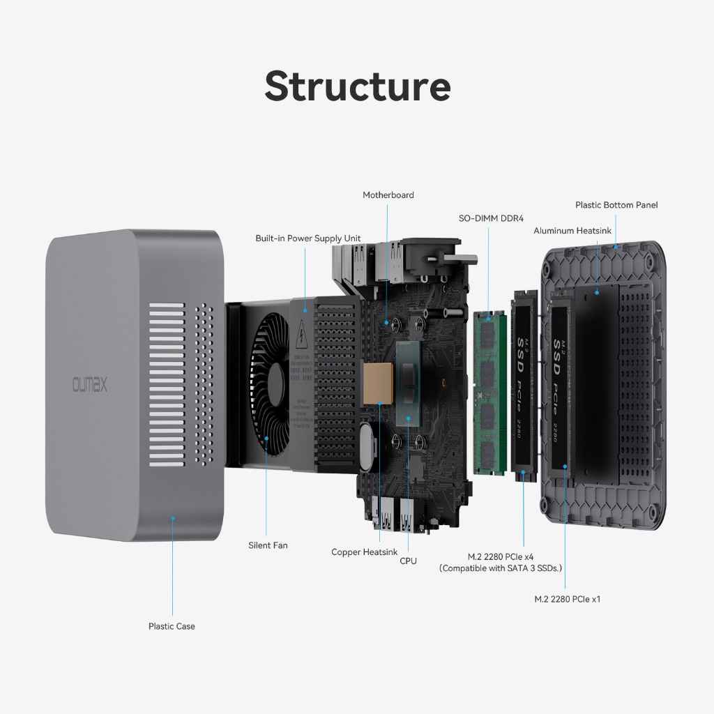 Mini Pc OUMAX Max N 8GB DDR4 128GB Intel Gemini Lake J4125 SSD Windows 11 Pro