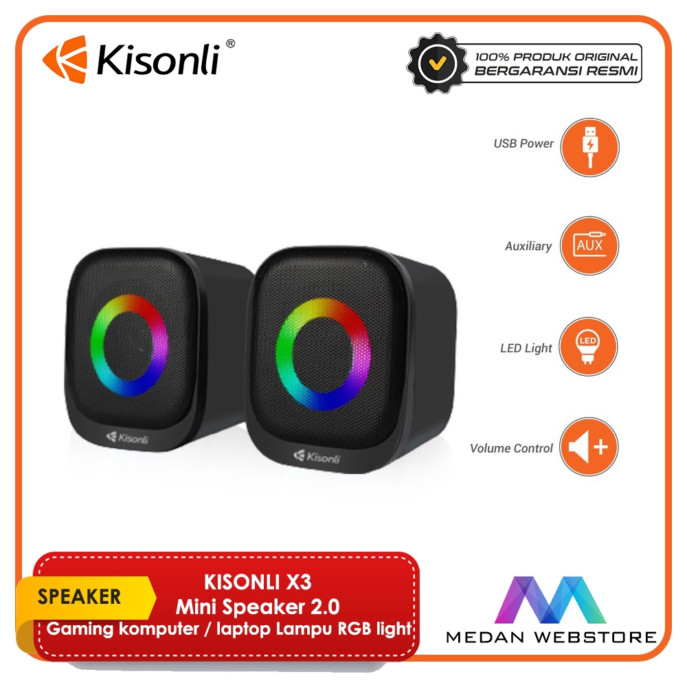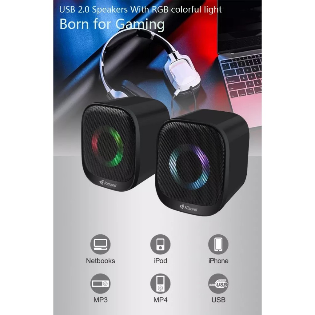 KISONLI X3 - Mini Speaker 2.0 Gaming komputer / laptop Lampu RGB light