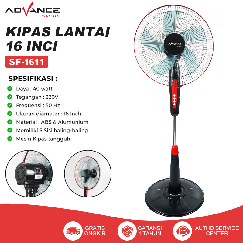 Advance Kipas Angin Berdiri SF-1611 Kipas angin 16 Inch Stand Fan 40W Baling Baling 5 Garansi 1Tahun