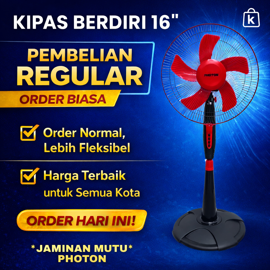 Photon Kipas Angin Berdiri Stand Fan 16Inch SF-16501 Angin Kencang, Tinggi Adjustable Merah Murah