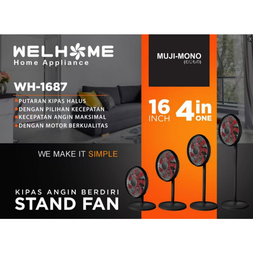 WH-1687 KIPAS ANGIN BERDIRI 16 INCI - DESAIN MINIMALIS ELEGAN "1687 -16 Inchi" "1253 12 Inchi" "1263 12 Inchi" "1666 16