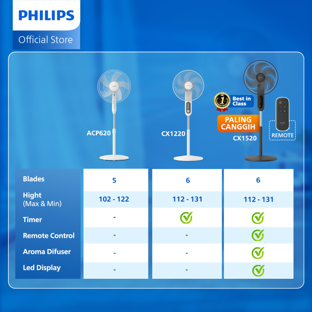 Terbaru! Kipas Angin Philips Hitam CX1520/01 - Paling Canggih dengan Remote & Timer, Digital Display Touch Screen, Aroma