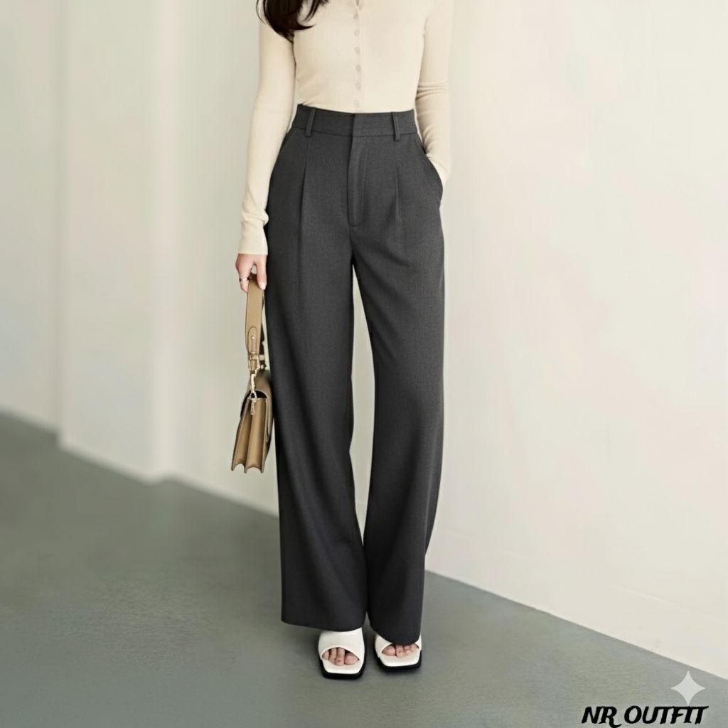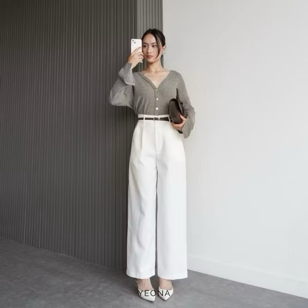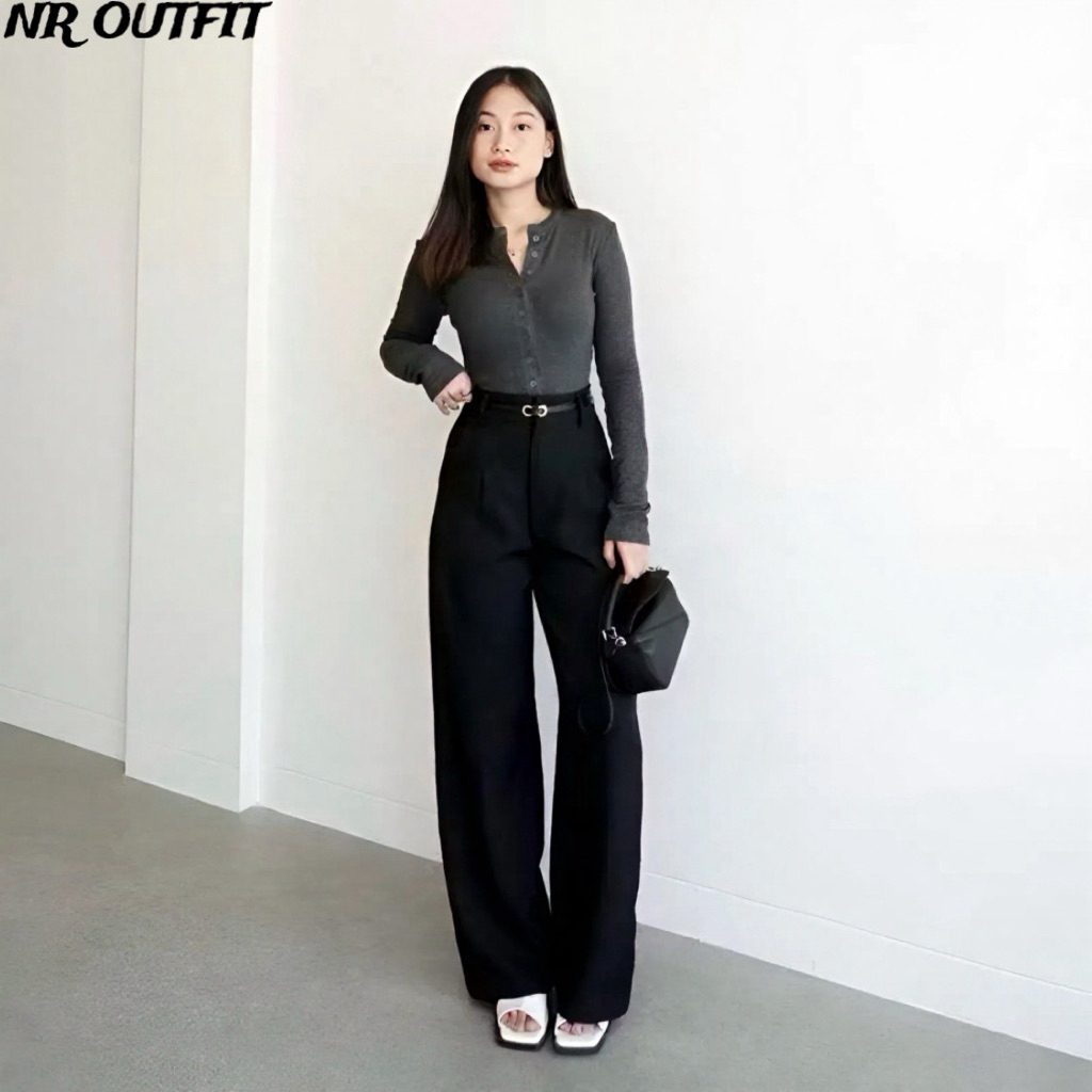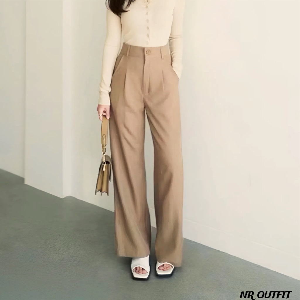 Viona Pants - Loose Pants Trousers Semi Woll - Celana Kulot Wanita - Celana Panjang Wanita - Celana Kantor - Celana Wanita Terbaru - Celana Kulot Anti Kusut - Celana Highwait Wanit
