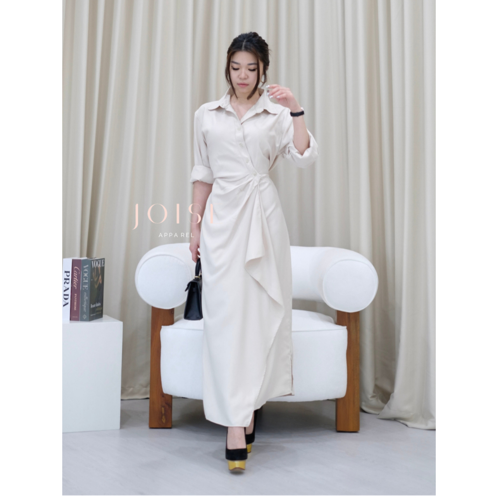 JOISE - Aurora Flare Asymmetric Long Dress / Dress Kancing Maxi Casual Polos Twill