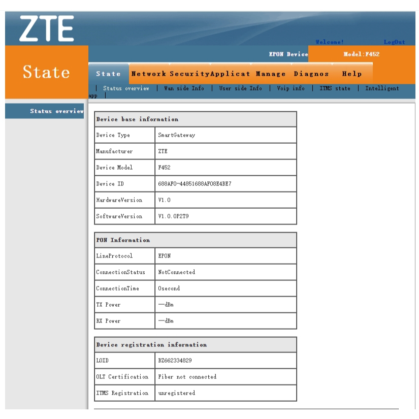 ZTE F450 V2 EPON Modem WiFi | 1GE + 3FE Port | Router ONU ONT | Support Bridge Mode | Firmware Inggris | Termasuk Adaptor