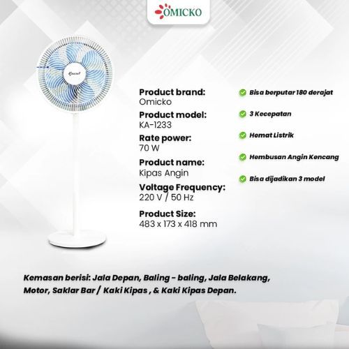 Kipas Angin Omicko 12 Inch 3in1 | Kipas Berdiri Meja Lantai | Angin Kuat | Garansi Resmi 1 Tahun