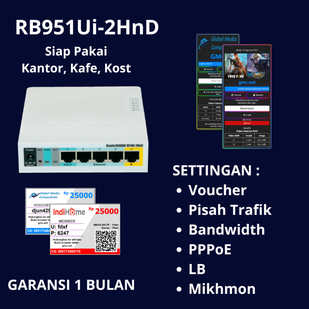 MikroTik RB951Ui-2HnD Routerboard 2ghz Wireless Siap Pakai