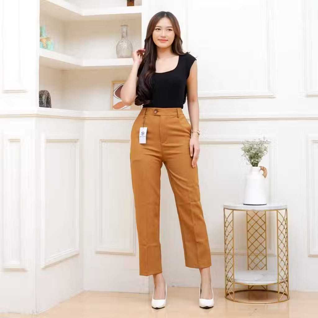 Luvena - Celana Kerja Wanita Kantor Daily Simple Pinggang Karet Belakang