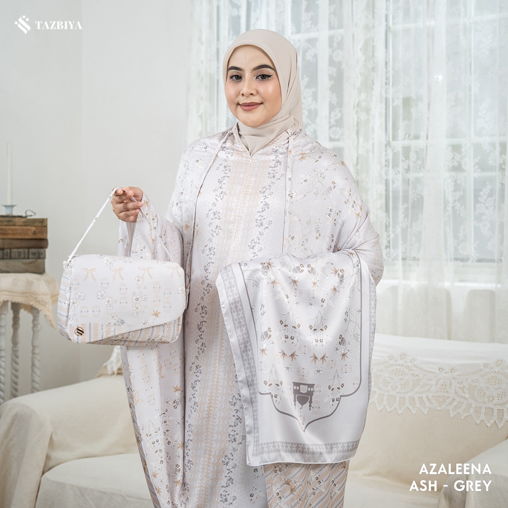 MUKENA TAZBIYA PREMIUM AZALEENA SERIES | Mukena Rayon Satin 2IN1 Free Sajadah | Mukena Motif Floral | Mukena Rayon Satin