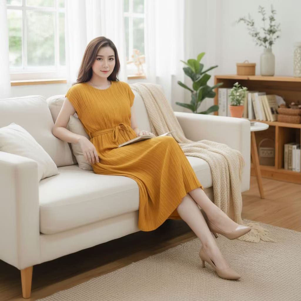 Long Dress Wanita Plisket Tanpa Lengan/Dress Viral 2025/Dress Wanita/Pakaian Wanita/Dress Terlaris