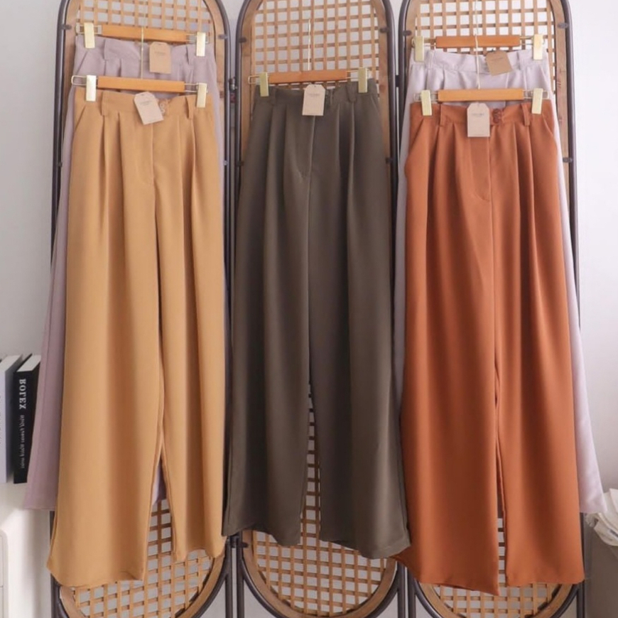 LOOSE PANTS TROUSERS CELANA HIGHWAIST ANTI KUSUT CELANA KULOT WANITA CELANA KANTOR FORMAL WANITA