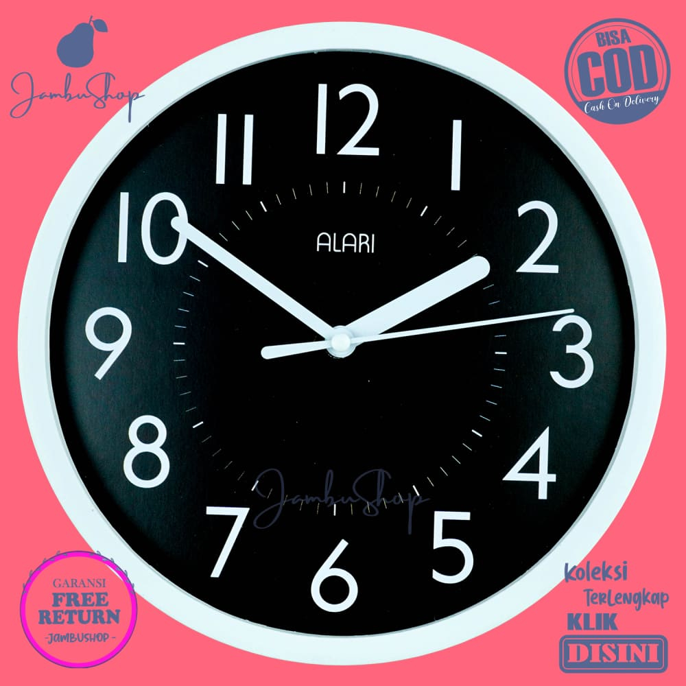 Jam Dinding Alari AL1209-1668 Minimalis Quartz Minimalis Hitam Hiasan Kamar BestSeller