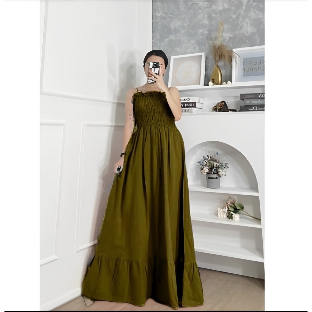 Korean Dress Polos/ Dress Kerut Tali/Dress Smoke Panjang crincle Air Flow