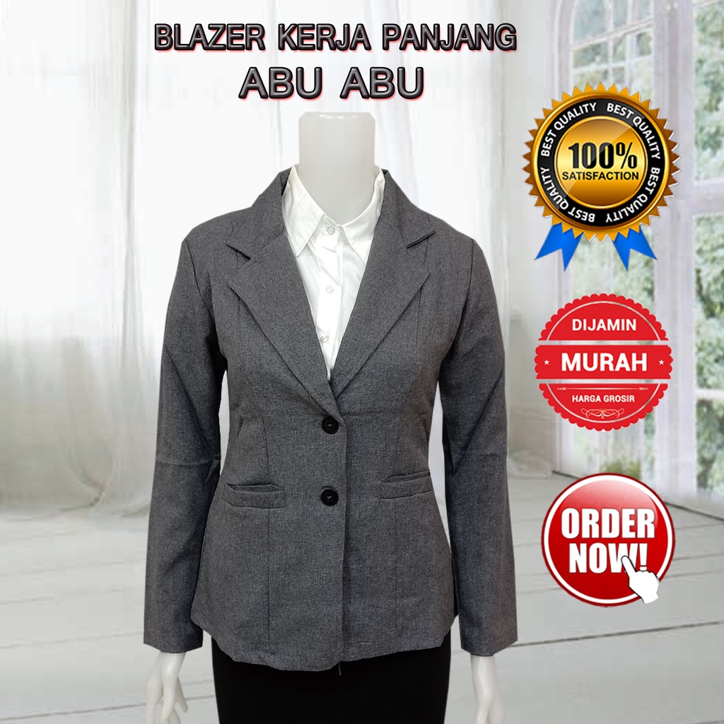 Blazer Wanita Formal Hitam Gabardin Premium || Blazer Kerja Elegan Kancing Dua Gabardin