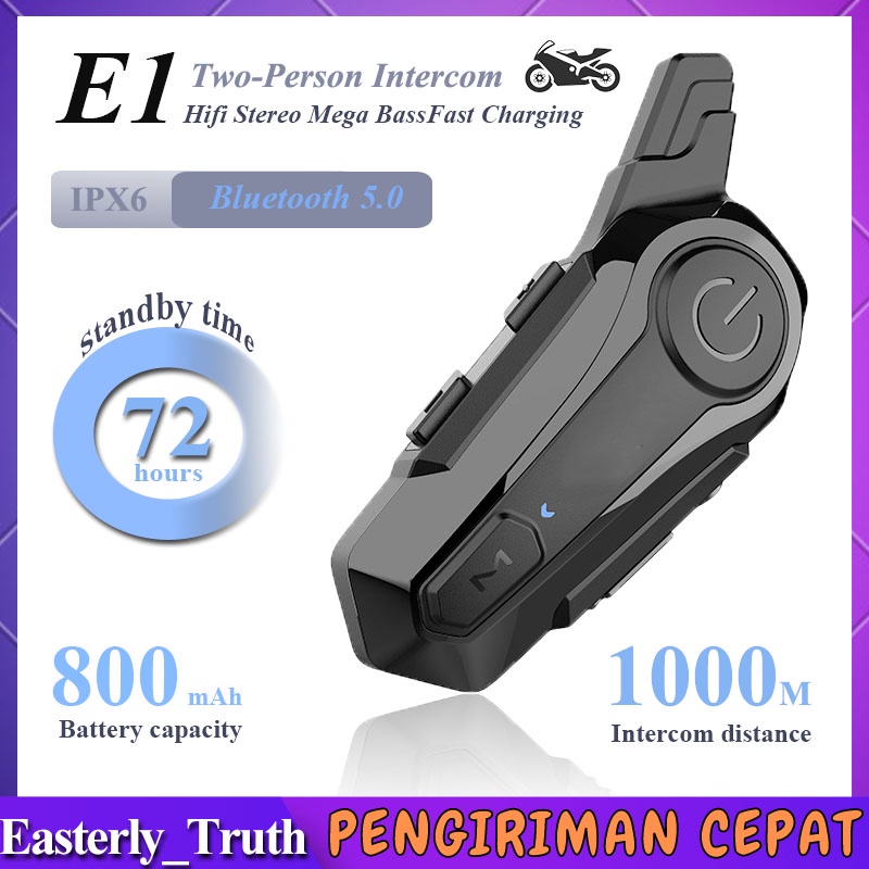 [2PCS] E1 Intercom Helm Bluetooth 5.0 FM Radio Intercom Dua Arah Dan Peringkat Tahan Air IPX6 Waktu Siaga Yang Lama Deng