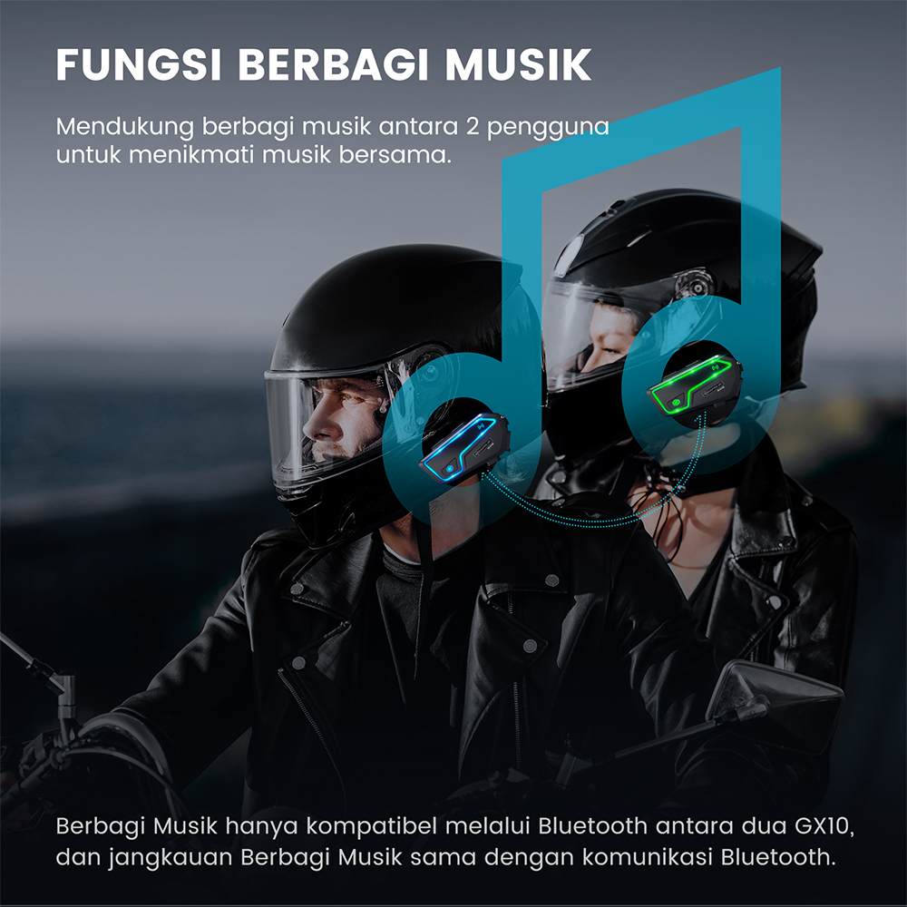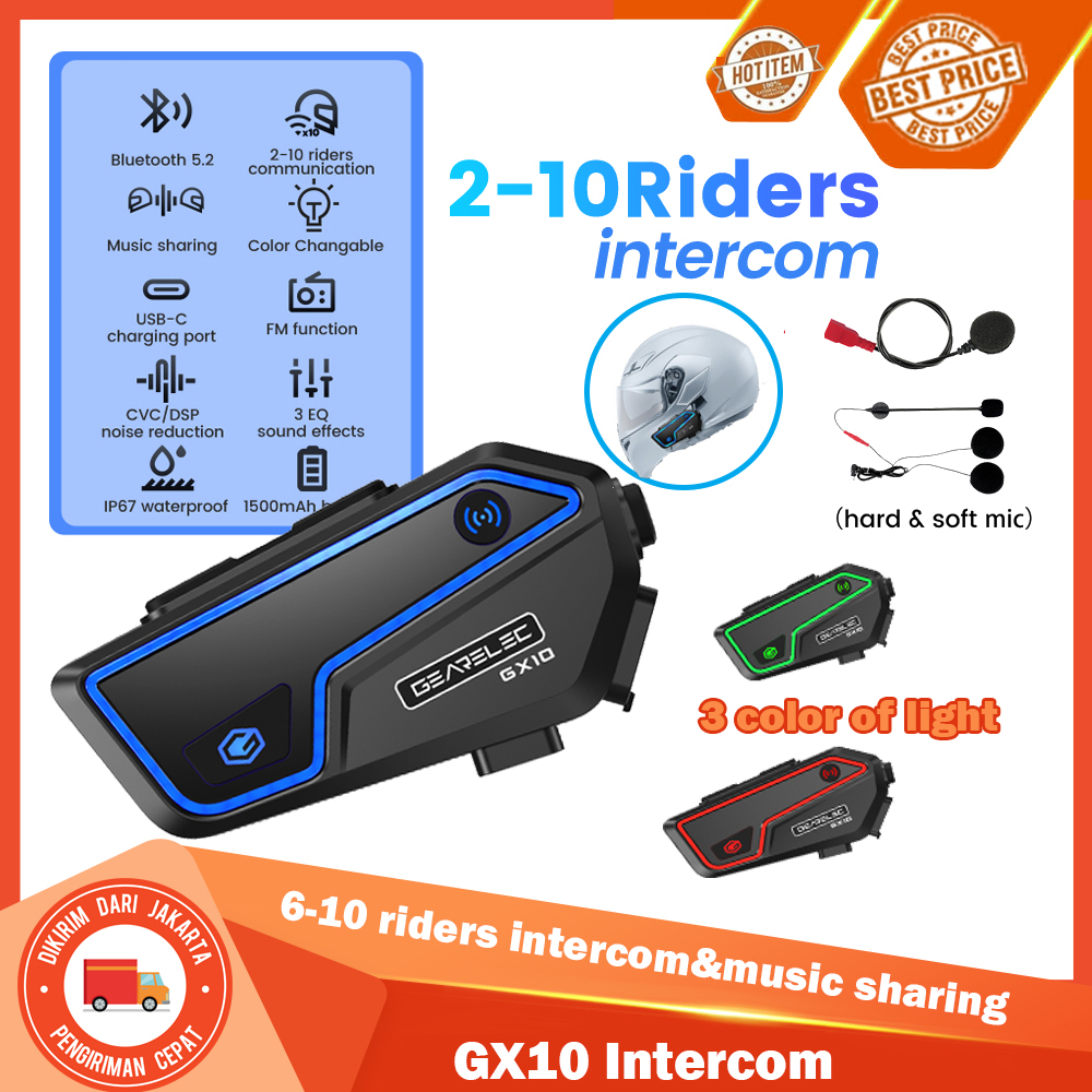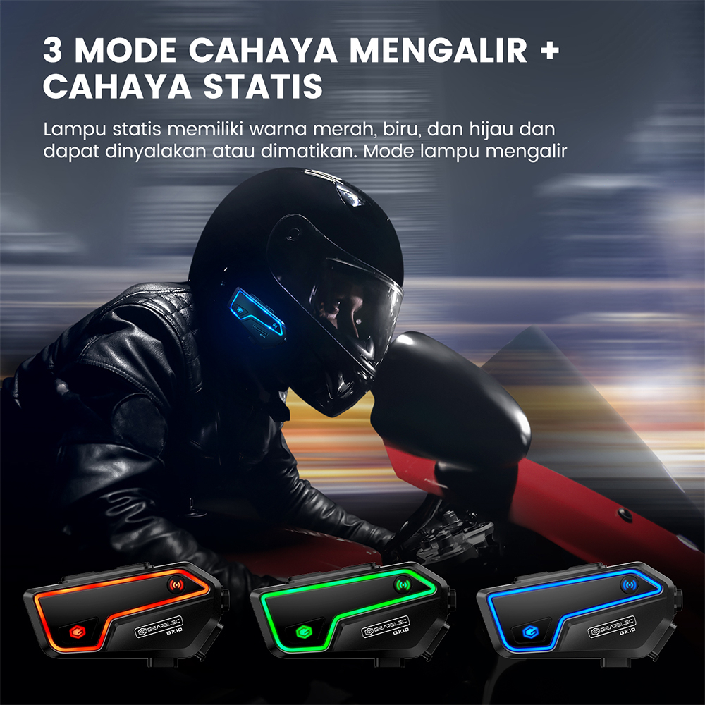 GEARELEC GX10 Bluetooth 5.2 Helm Sepeda Motor Interkom Hingga 10 Pengendara IP67 Tahan Air bisa berbagi musik dengan FM