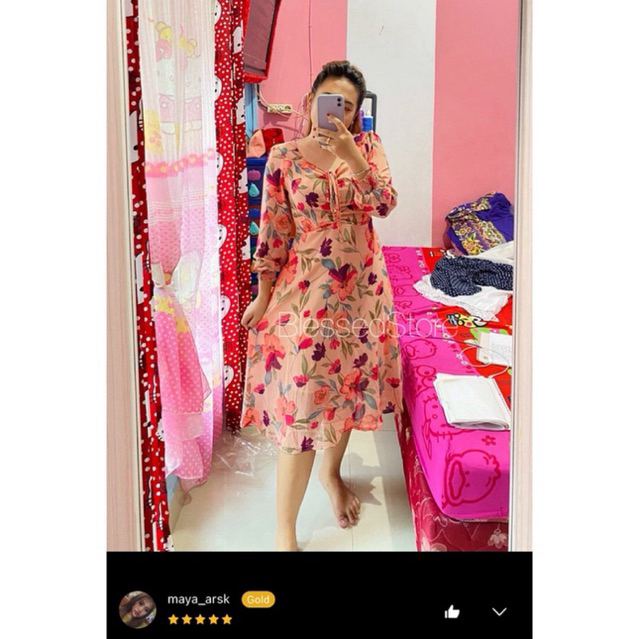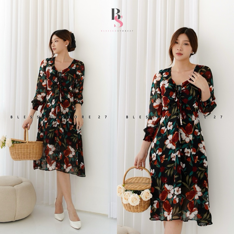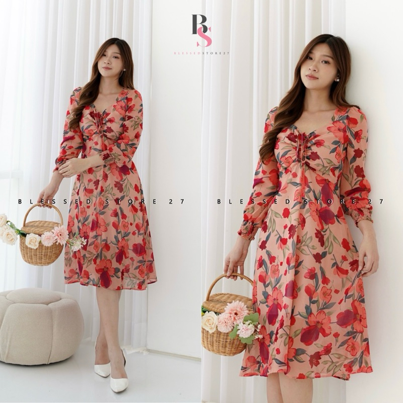 [ADA SIZE JUMBO] D0201 LAYLA KOREAN STYLE FLORAL VINTAGE MIDI DRESS PANTAI SUMMER MUSIM PANAS HIJAB FRIENDLY LIBURAN JALAN SANTAI MANIS BALI BUNGA