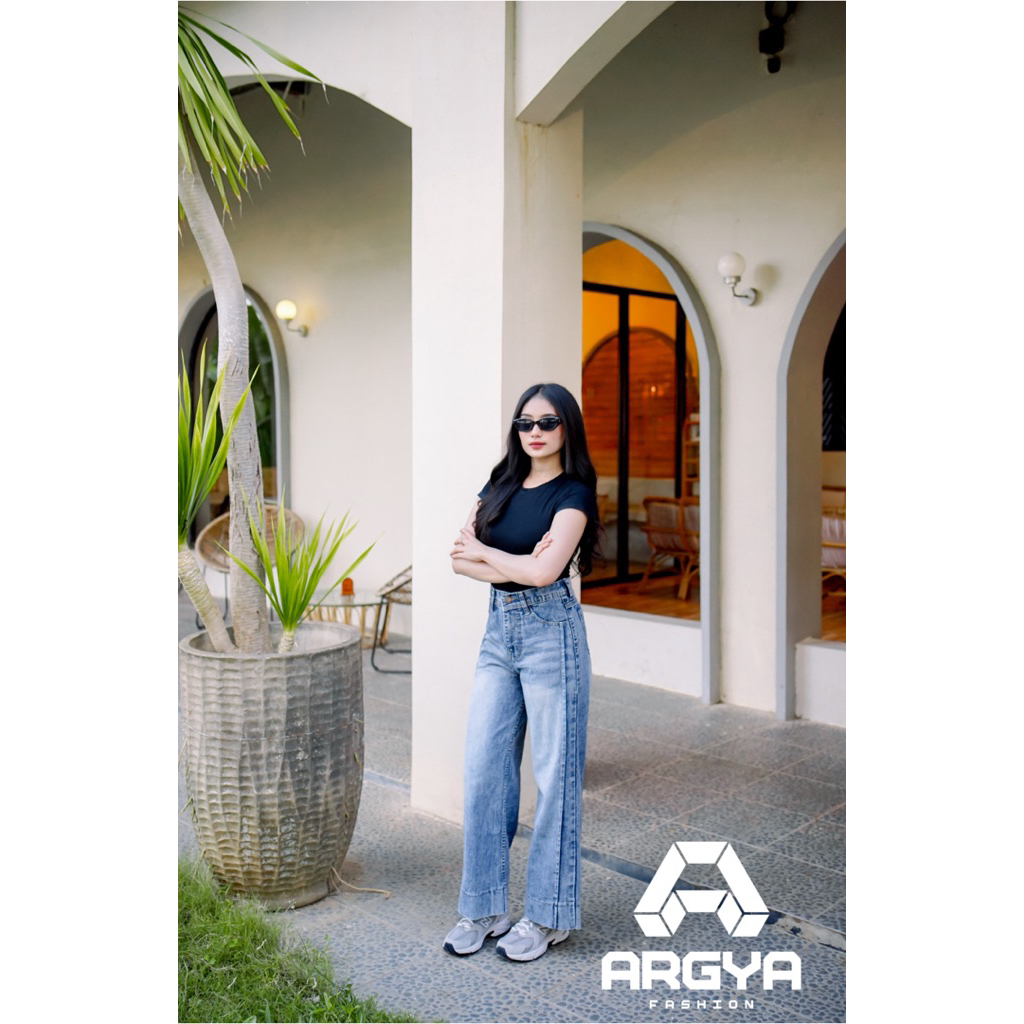 highwaist kulot loose celana wide leg jeans korea style-celana higwaist wanita wide leg non stretch