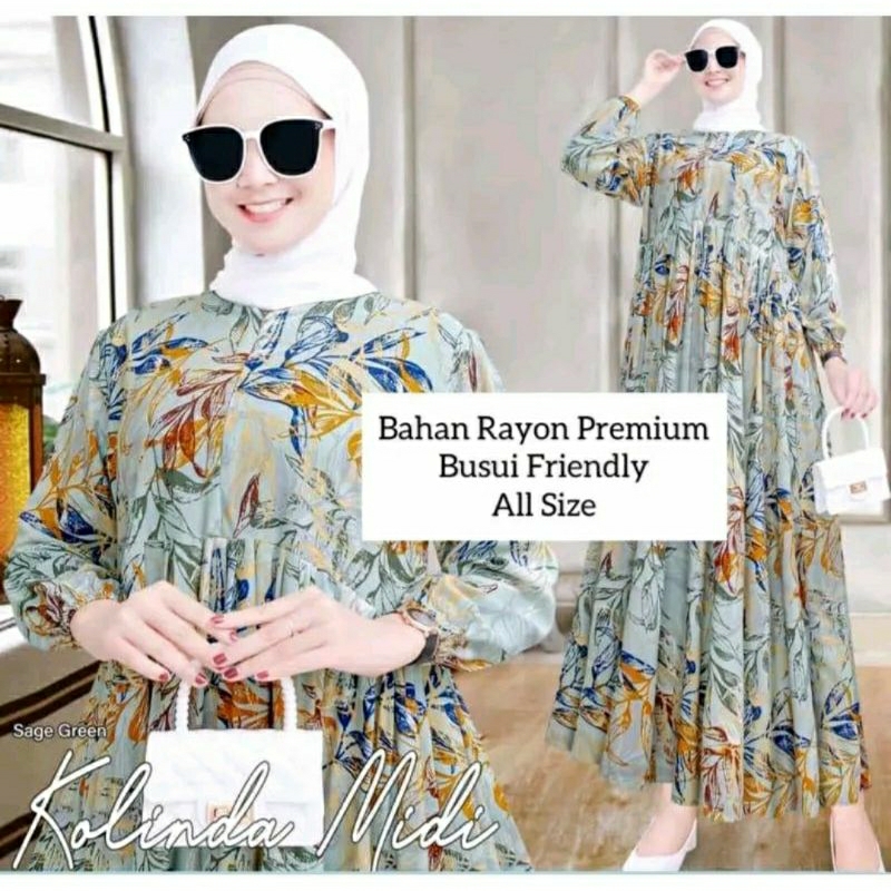 midi dress wanita motif terbaru / busui adem gamis kolinda wiola kalana midi