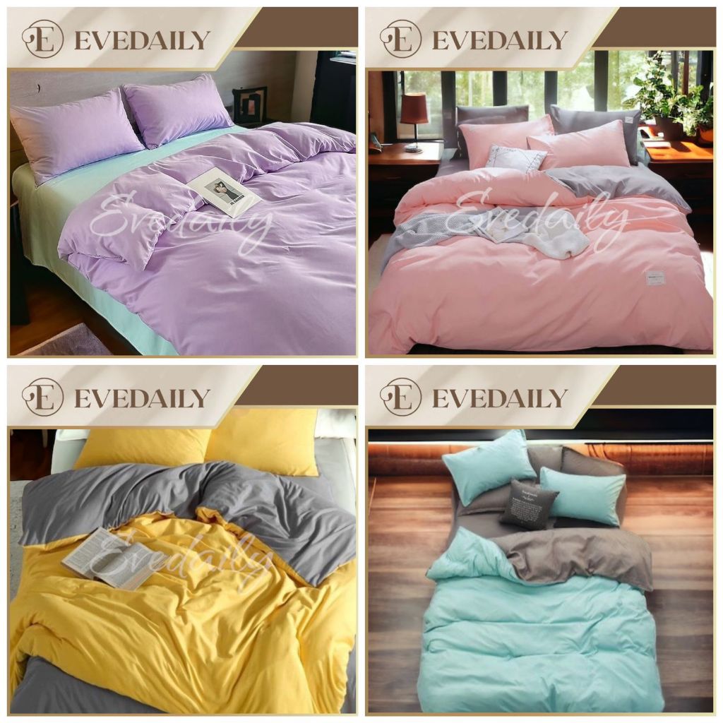 Two Tone Bedcover Set Kombinasi Dua Warna - Polos - Plain - Pastel - Semua Warna Lengkap - Badcover Aesthetic - 90x200 - 100x200 - 120x200 - 160x200 - 180x200 - 200x200 - Evedaily