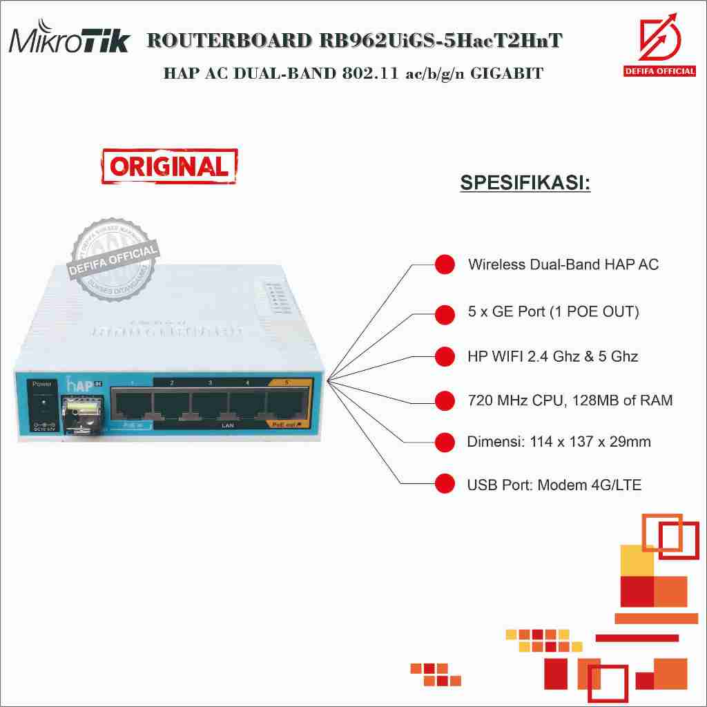 Mikrotik Routerboard RB962UiGS-5HacT2HnT RB962UiGS RB 962 UiGS Normal Lancar Jaya