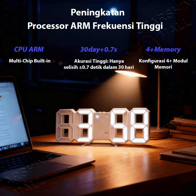Jam Dinding Digital LED Jam Meja LED 3D Bentuk Angka Modern Minimalis Alarm Clock