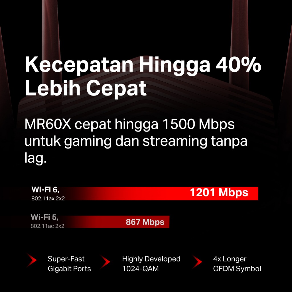 TP-Link | Mercusys MR60X | AX1500 WiFi 6 Router | Dual Band | Gigabit Port | 1500 Mbps Wireless