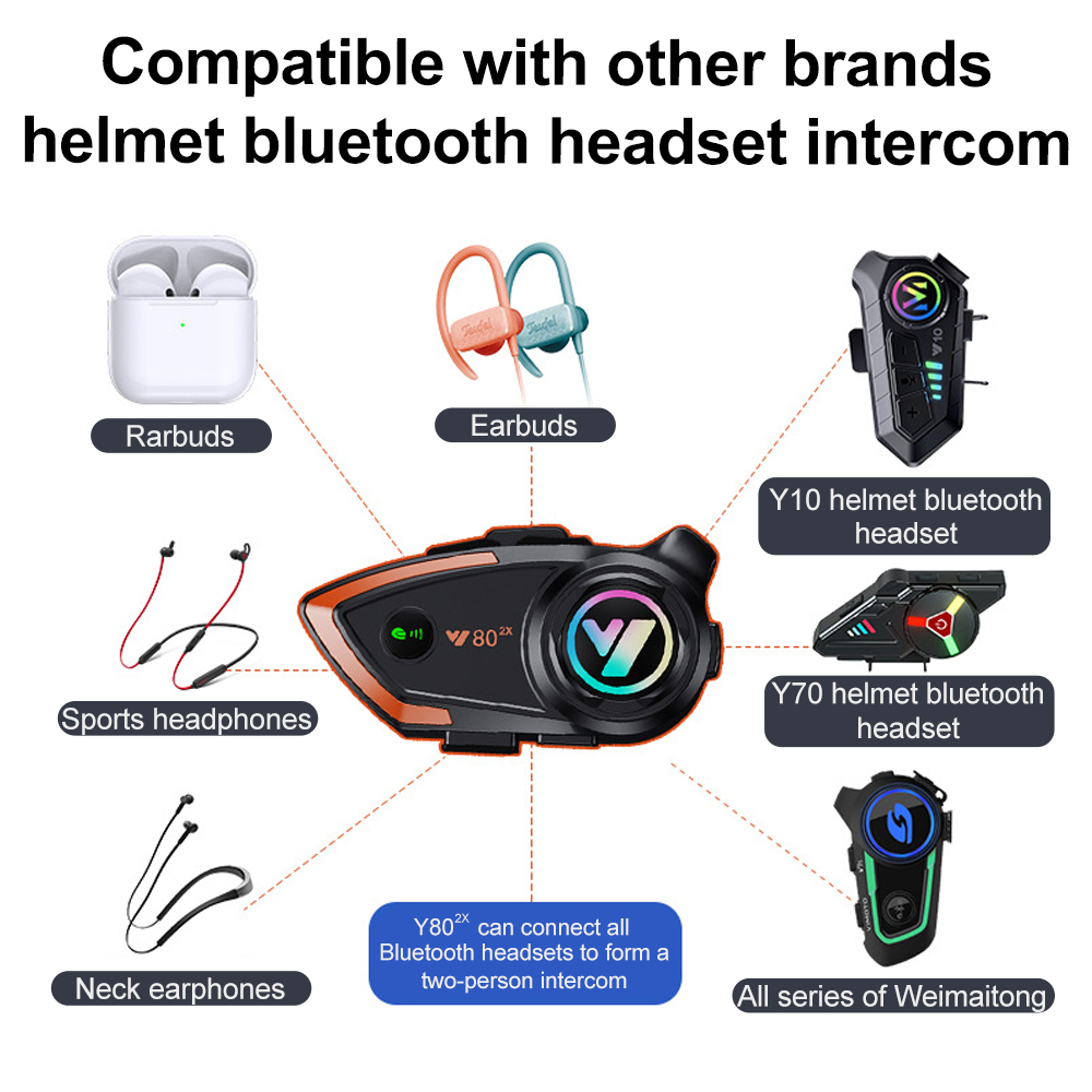 Y80-2x Chip Qualcomm Bluetooth 5.0 Intercom Helm Sepeda Motor Bluetooth Headset Interkom Headset 2 orang Interkom 1000m