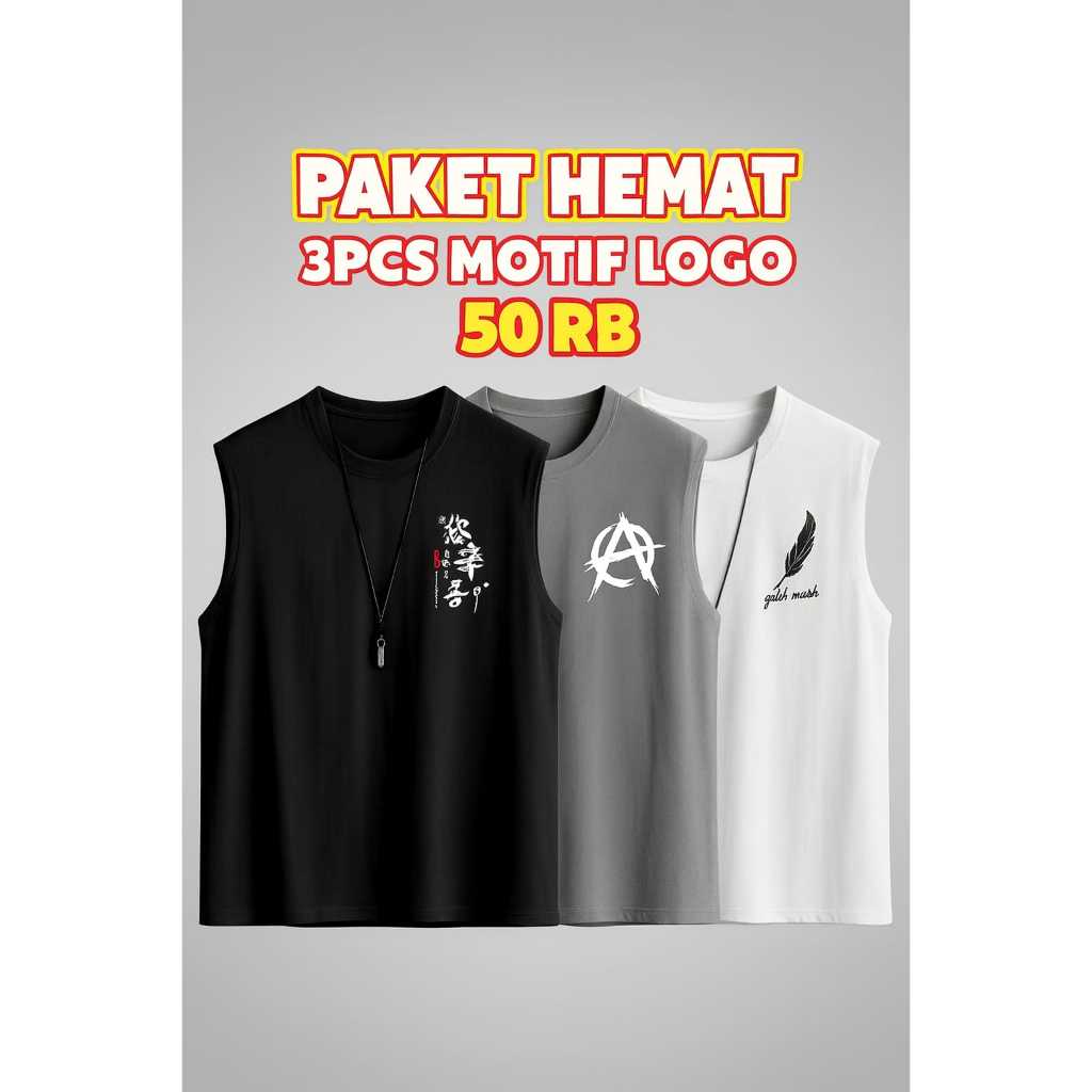 Kaos Singlet Pria Isi 3pcs 50ribuan / Kaos Lekbong Cowok Kekinian