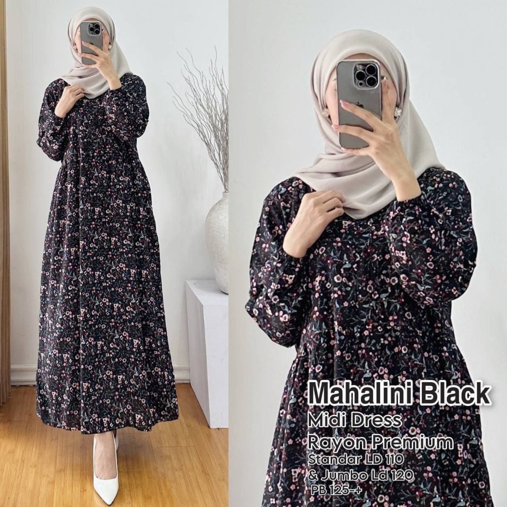 QYNZA Midi Dress Rayon Motif Premium Kekinian Standar & Jumbo LD 110 & 120