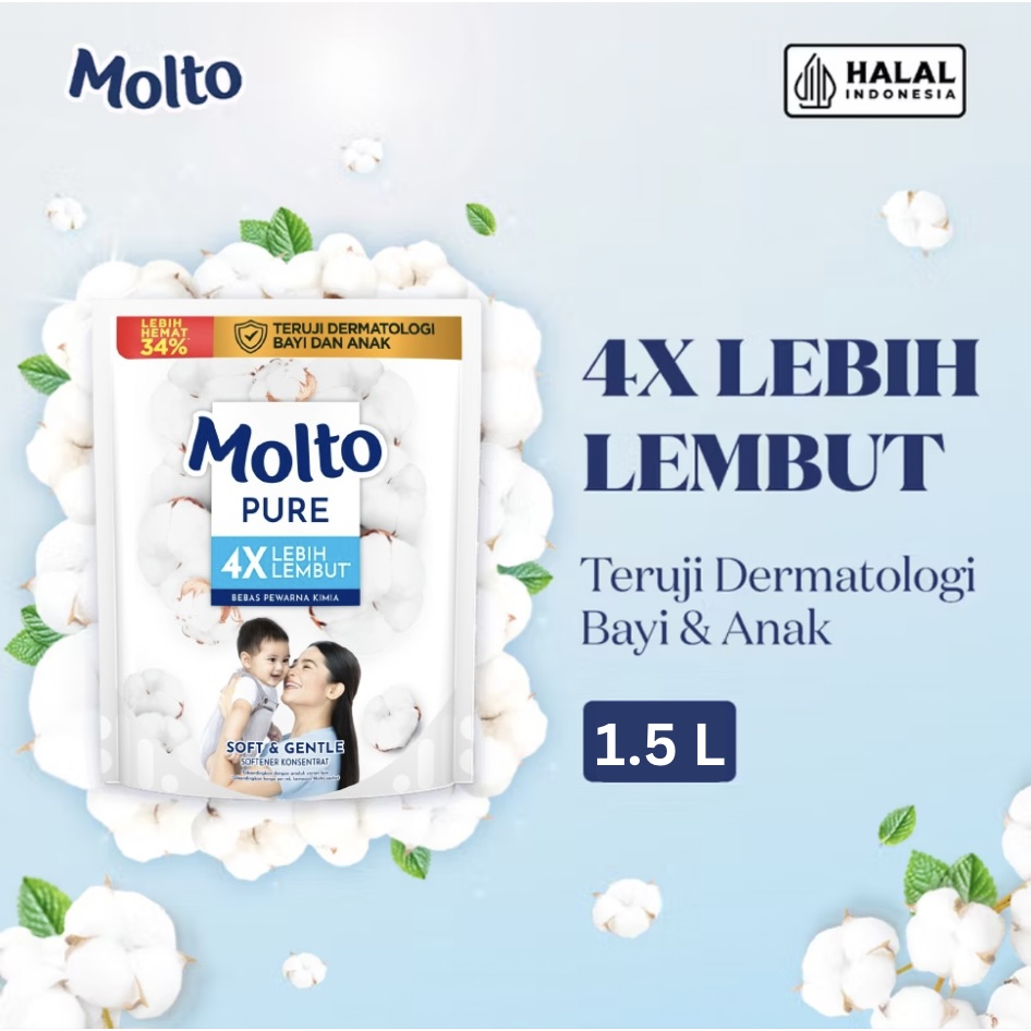 Molto Pelembut & Pewangi Pakaian Bayi Softener Konsentrat Pure Soft & Gentle 1.5 L