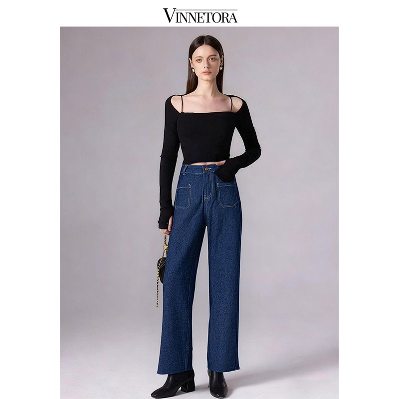 VINNETORA Straight Jeans Wanita Hitam Jeans Wanita 8814