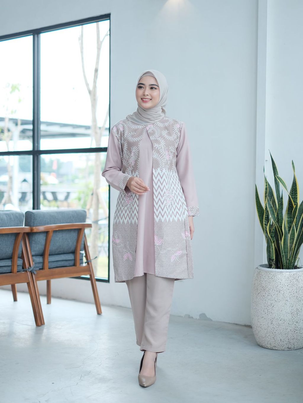 Brawee Batik Tunik Couple Modern Set Pakaian Couple Kemeja Batik Pria Modern M L Xl Xxl Jumbo