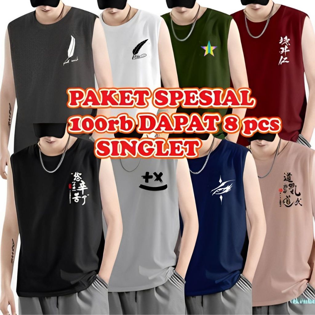 PAKET HEMAT Kaos Singlet Motif Logo 100 Ribuan Dapat 8 pcs Kaos Singlet / Size M L XL XXL
