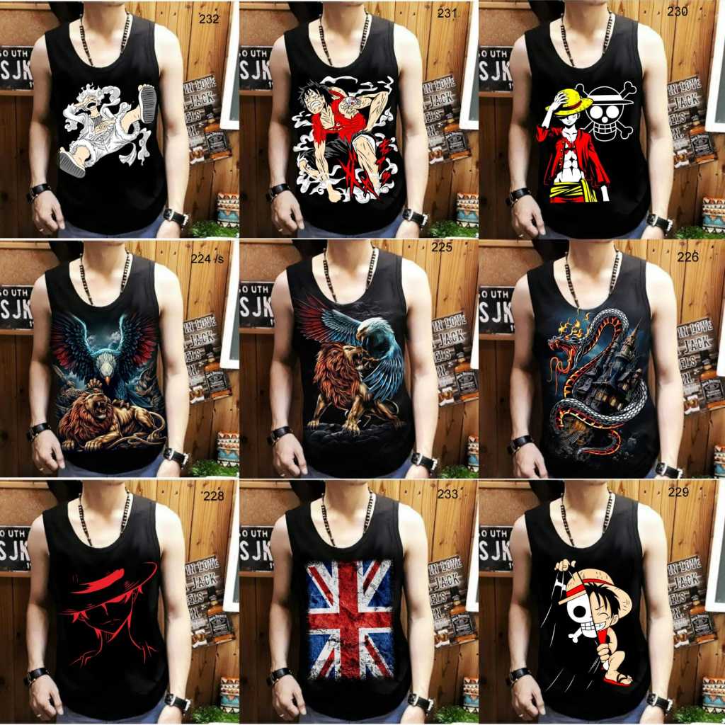 paket Singlet/Kaos dalam/tanpa lengan motif gambar acak random isi 3 smpai 6pc