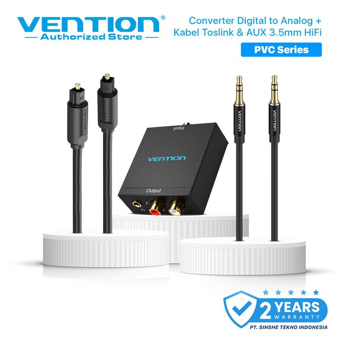 Vention Bundling Converter Audio Digital to Analog + Kabel Audio Aux 3.5mm for TV STB PS4 Speaker - PVC Series
