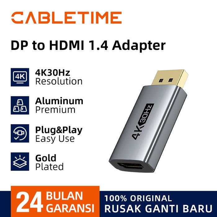 CABLETIME Adapter Converter DisplayPort (DP) Male to HDMI Female - CP21A 4K60Hz