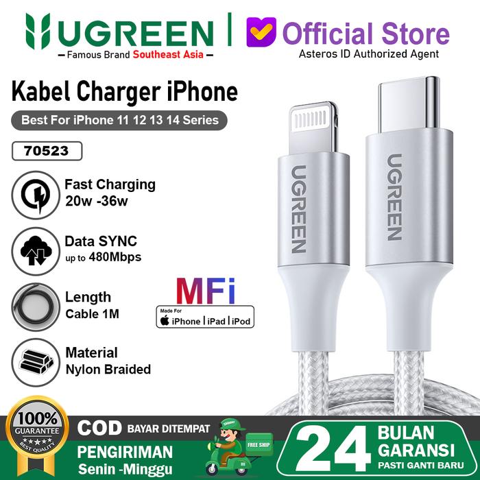 UGREEN Kabel Data Lightning Mfi For iPhone 11 12 13 14 Fast Charging - 70523 1M