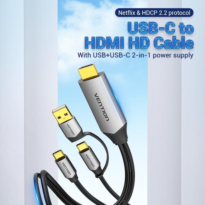 Vention Kabel Usb Type C To HDMI with 2in1 Power Supply USB+USBC MHL - CGX 1 Meter