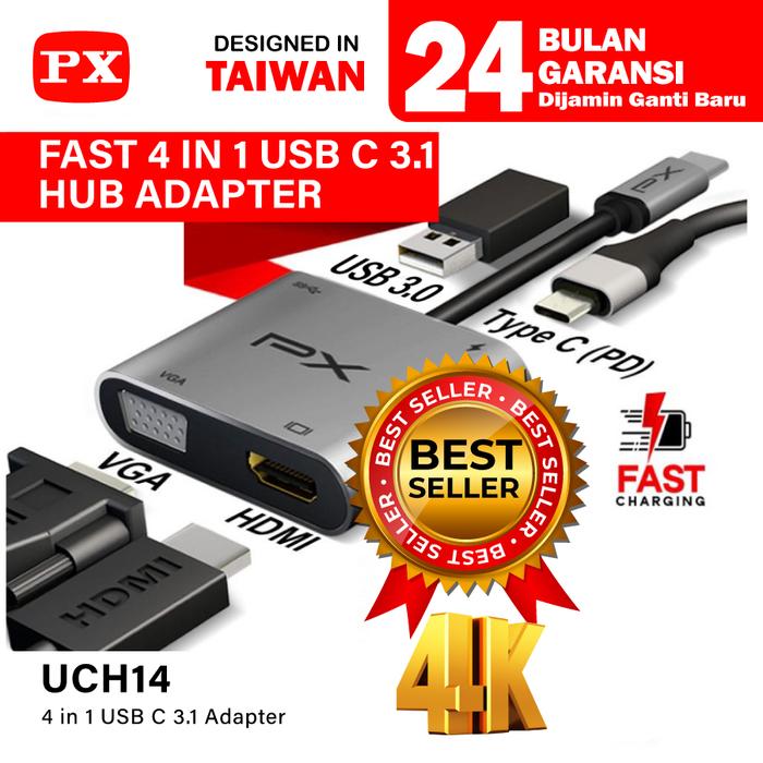 USB Type C 3.1 Hub Converter Adapter Laptop Macbook to HDMI VGA USB 4 in 1 PX UCH14 - Space Grey