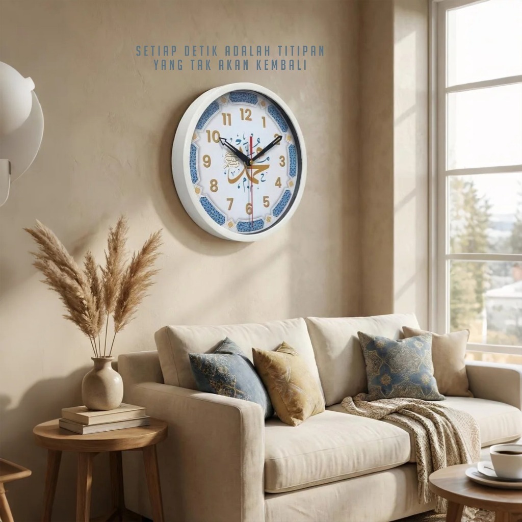 Jam Dinding Kaligrafi Muslim yoland | Dekorasi Dinding Muslim | Diameter 30cm Dekorasi Simple Minimalis Varian Ring polo