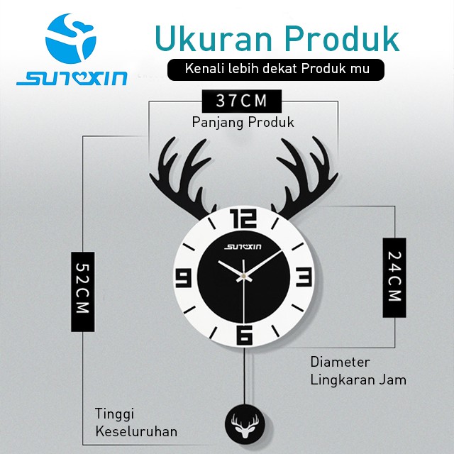 Sunxin - Jam Dinding Kepribadian Kreatif Kepala Rusa Nordic-9104